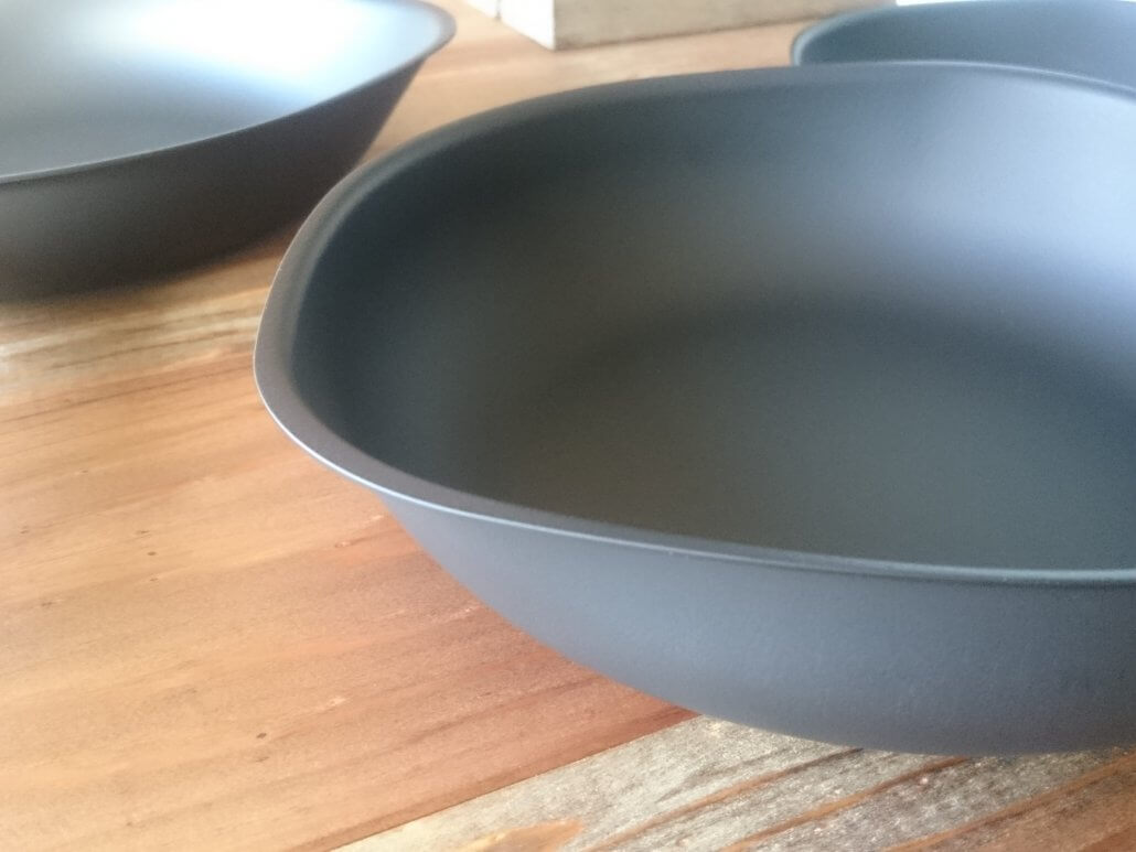 マグマプレート加工はブルーテンパ材の表裏両面に南部鉄器風の凹凸を浮き立たせ