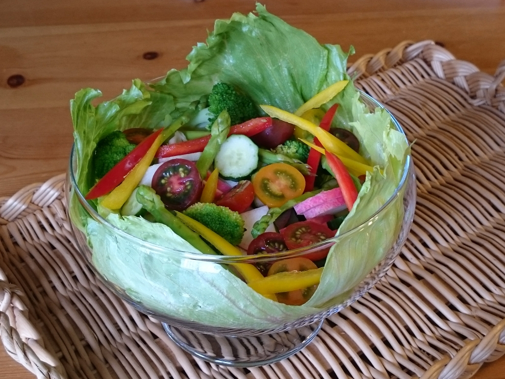 いつもの同じ材料で作ったサラダもコンポートに盛り付けると豪華な感じに。