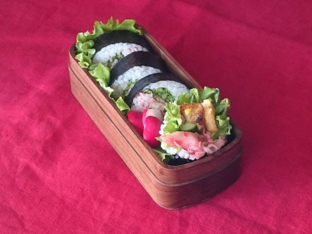 海苔巻きのお弁当は、食べやすくて良いですね。