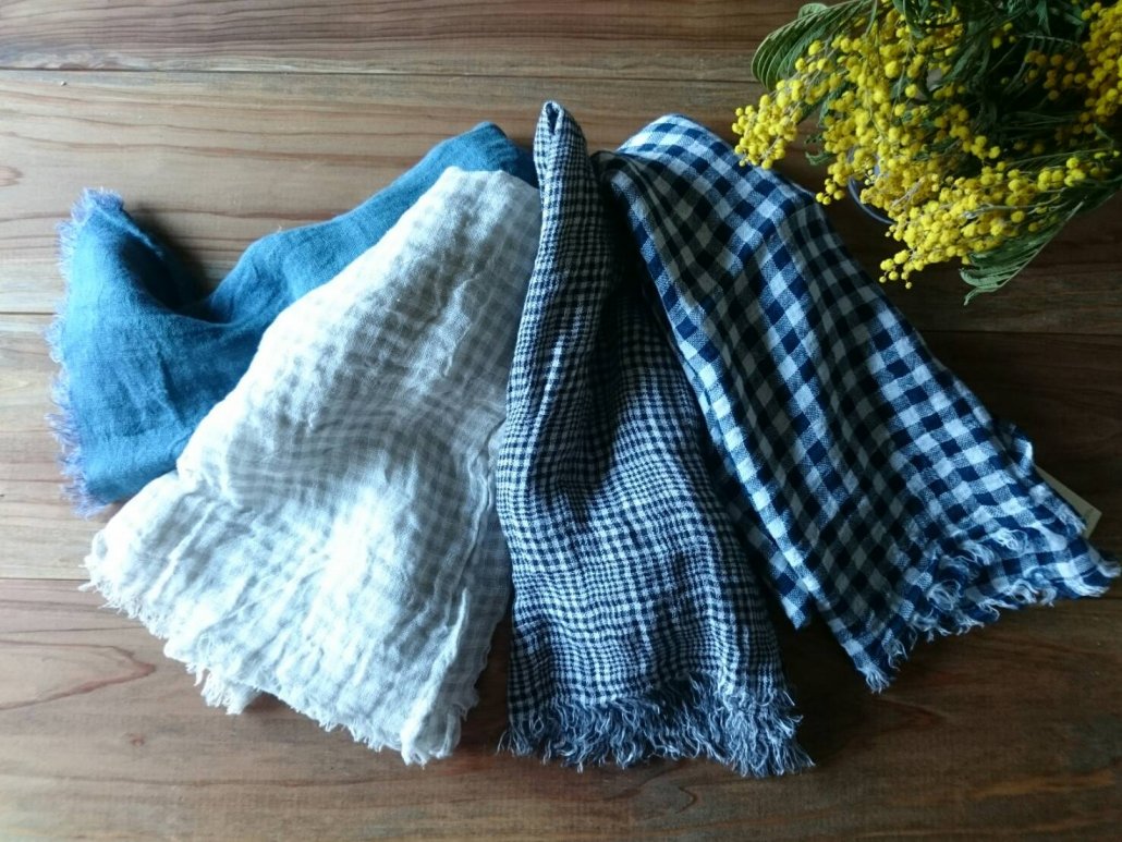 リネン100%のストールが入荷しています。