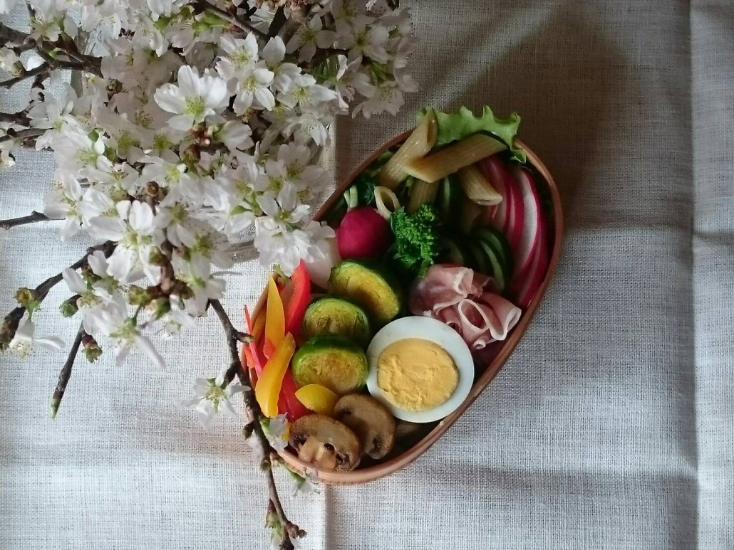 サラダパスタもわっぱに詰めて。