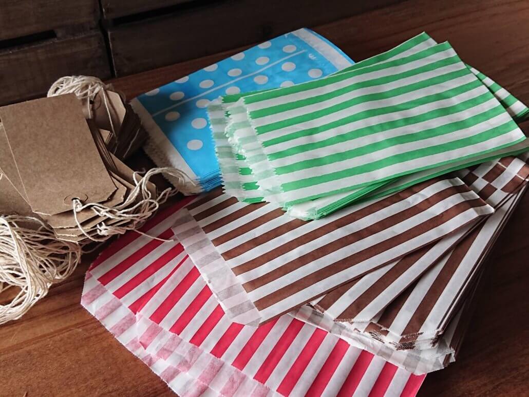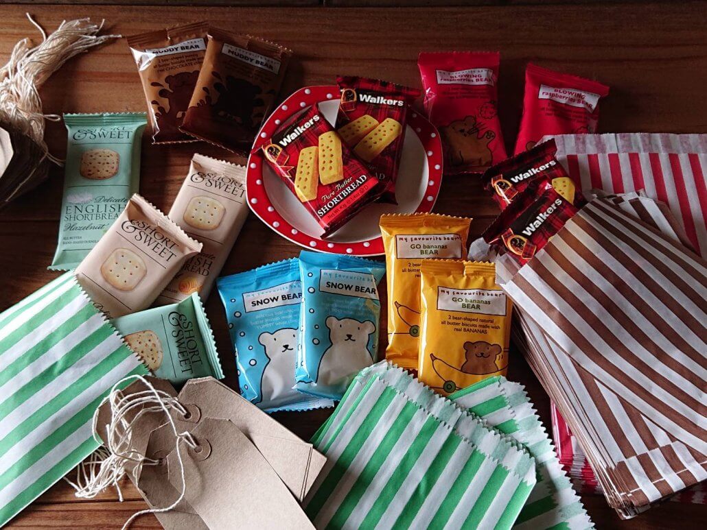 これらのお菓子は、国内の代理店より仕入しているものですが期間中お買い上げを頂いたお客様にはイギリスの資材屋さんで仕入れた紙袋に入れてお渡ししています。