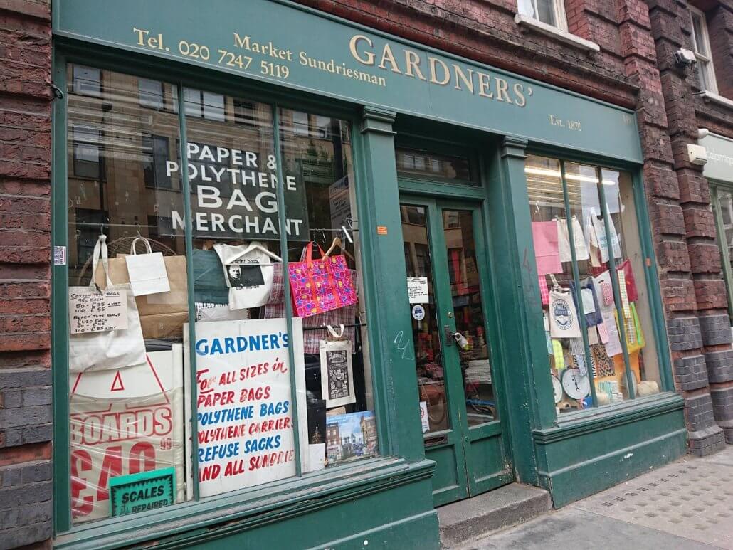 買い物をするとストライプやドットの紙袋に入れてくれるお店はロンドン郊外に多くありました。