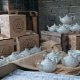 店内は足の踏み場もないほどの量の紙袋が積み上げてあります。