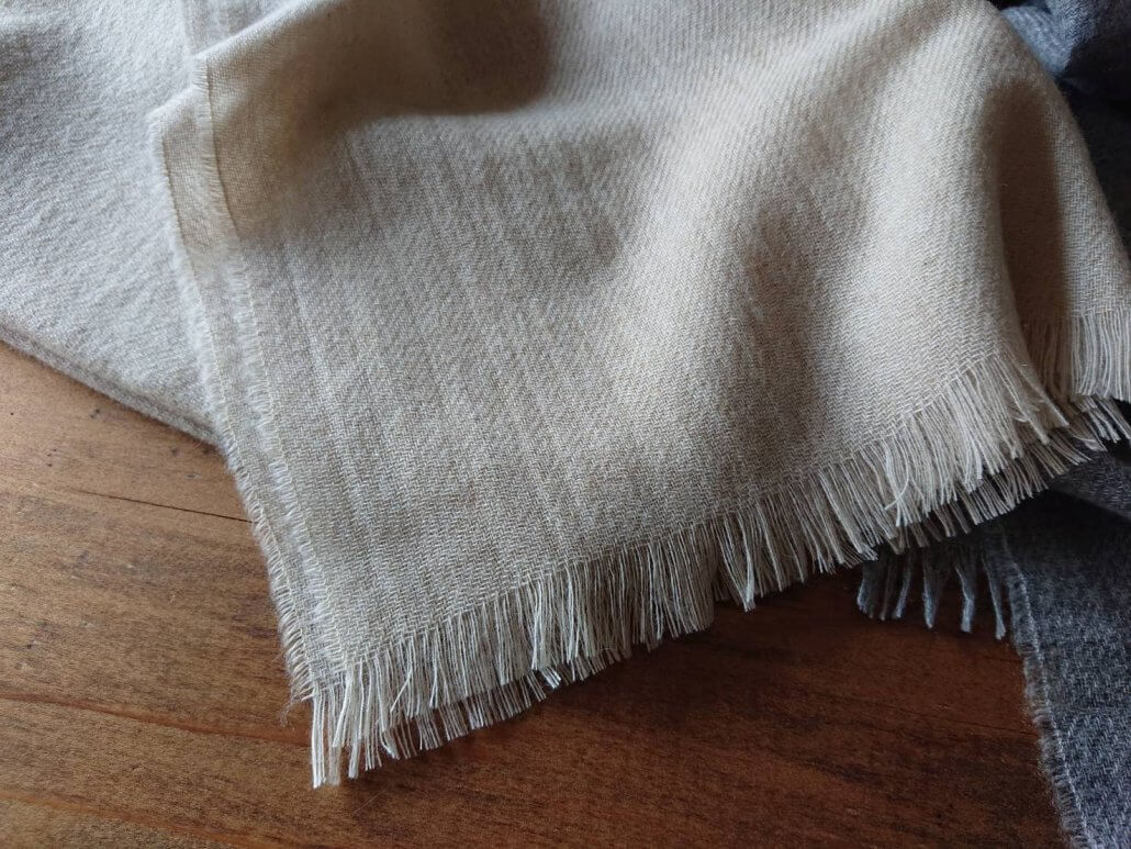 先日のジョンストンズタータンチェックカシミヤストールに続いて無地のストールをご紹介します。