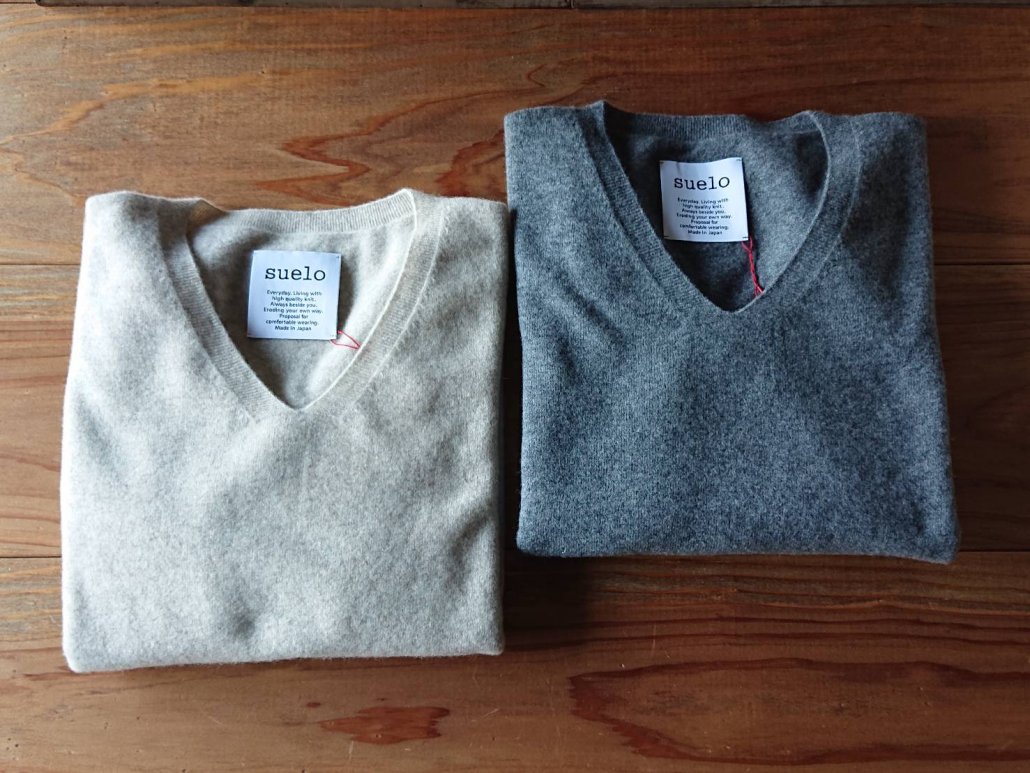 Sueloのニットは、カシミヤに匹敵する15μの細番手の上質なウールで編まれています。