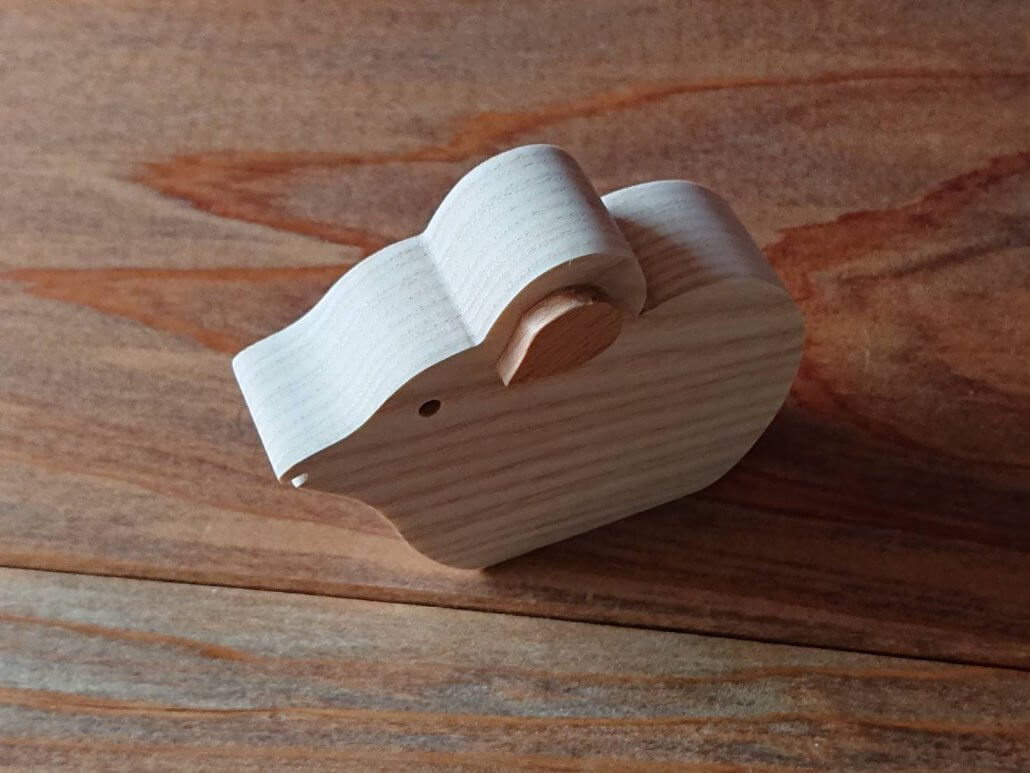 木目が美しく硬いタモ材を使用、色の濃い耳の部分にはブナ材にミツロウワックスを塗り仕上げています。