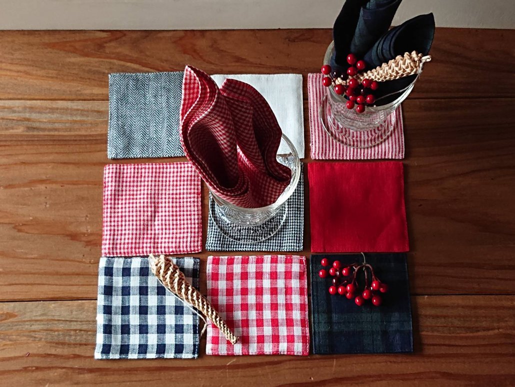 テーブルクロスやコースター、キッチンクロスなどクリスマスやお正月のテーブルコーディネートが引き立ちます。