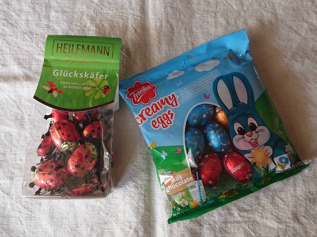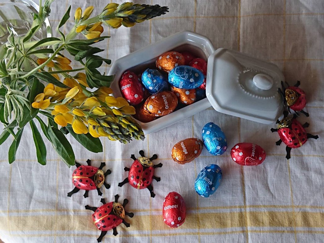 ラッキーモチーフのてんとう虫と、3種の味が楽しめるイースターエッグチョコレートです。