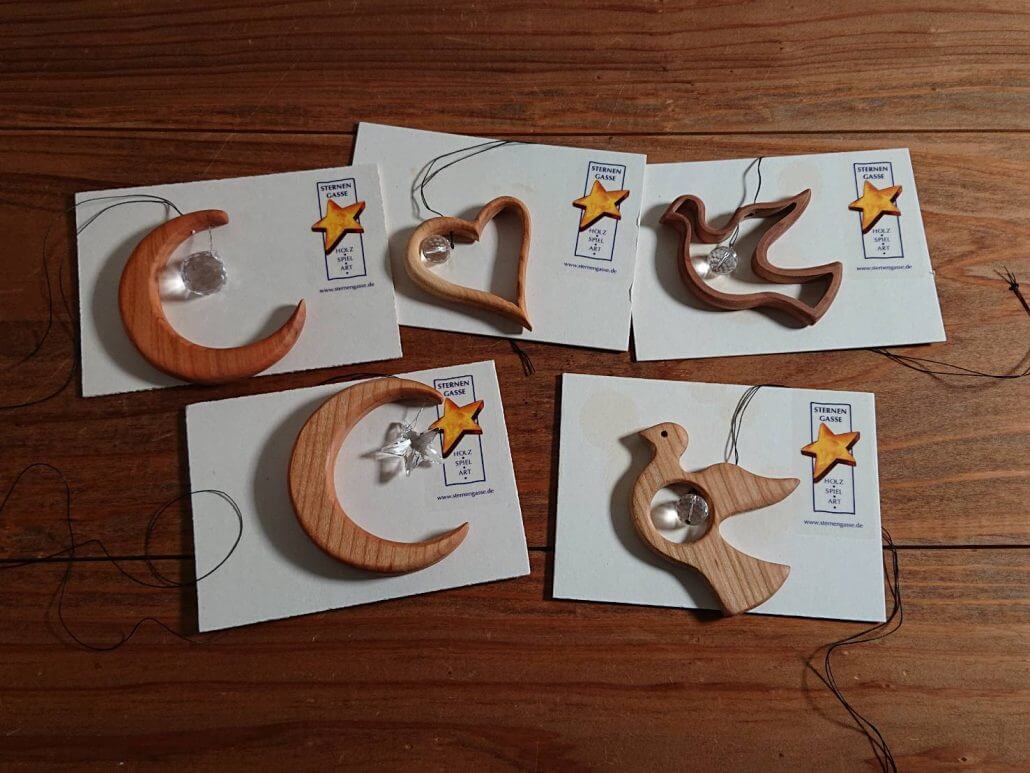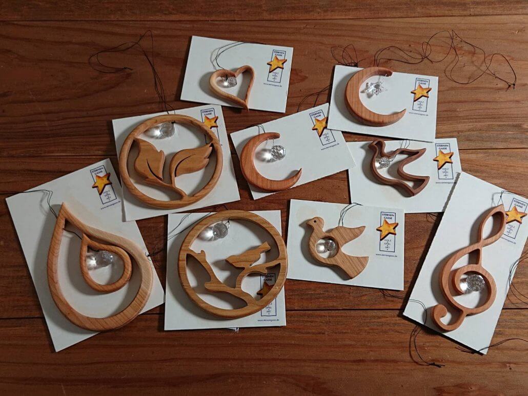 サンキャッチャーというとスワロフスキーとビーズなどを組み合わせた全体にキラキラしているものが多いのですがパディーズで扱っているサンキャッチャーは、ドイツで作られている木とスワロフスキーを組み合わせたあたたかみのあるサンキャッチャーです。