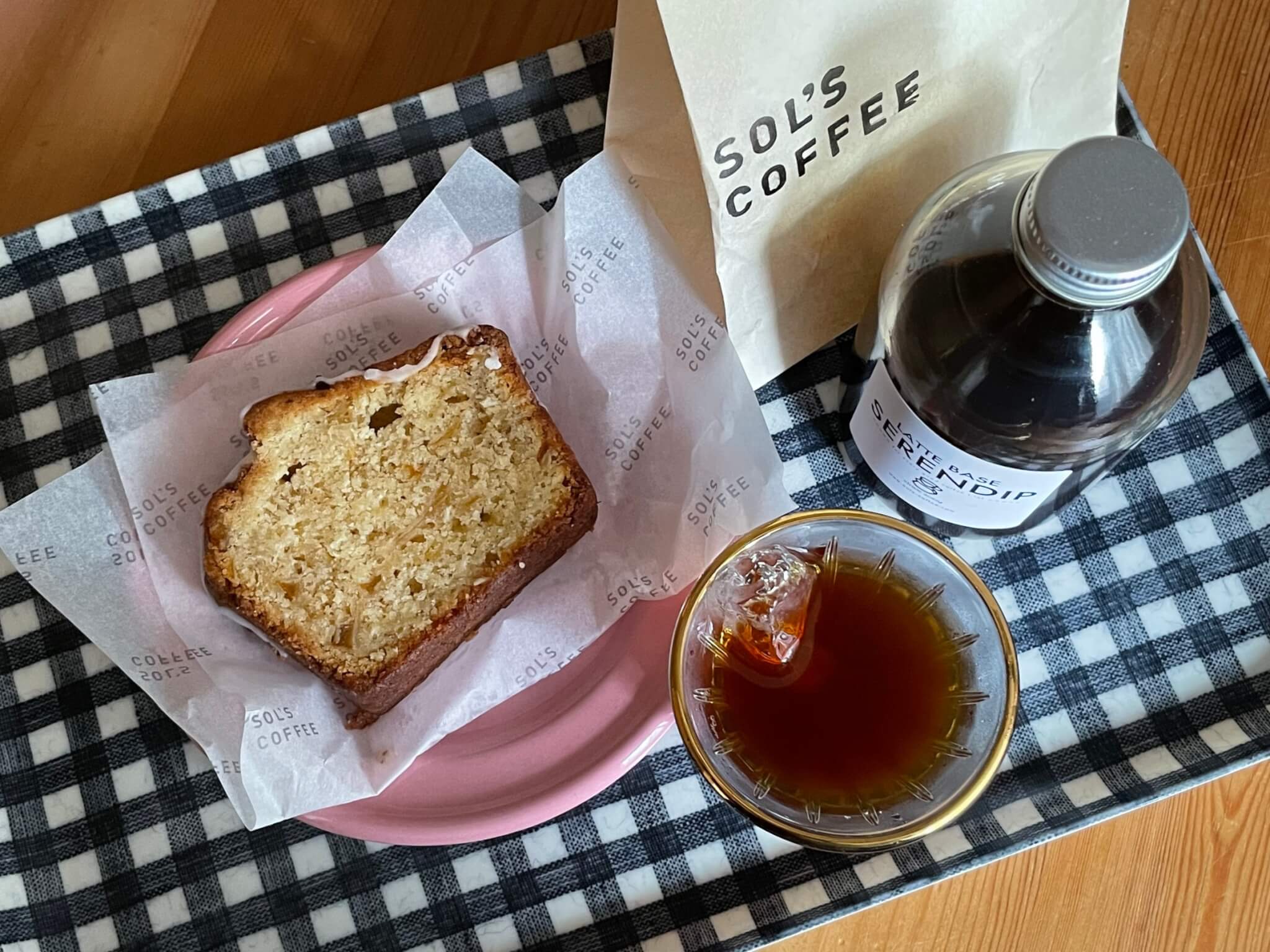 この数年でたくさんの素敵なお店が蔵前にはオープンしました、その中のひとつSOL’S COFFEEさんでレモンパウンドとアイスコーヒーをテイクアウト。