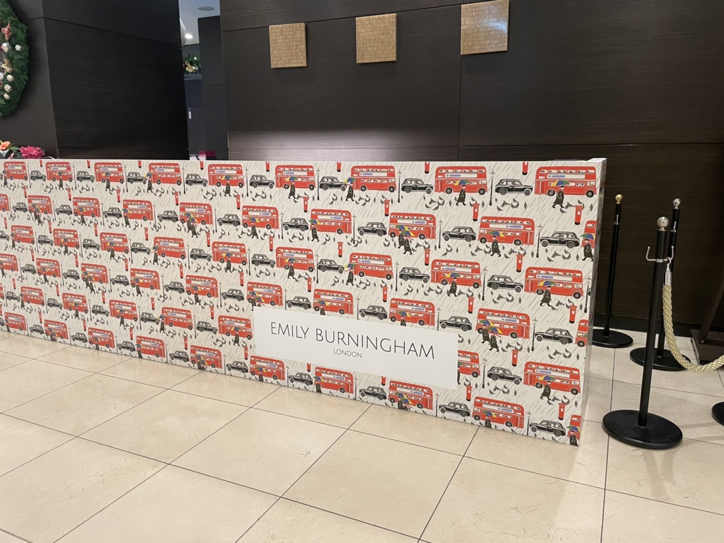 手ぬぐいでもおなじみ、エミリーデザインのパネルも飾られて。