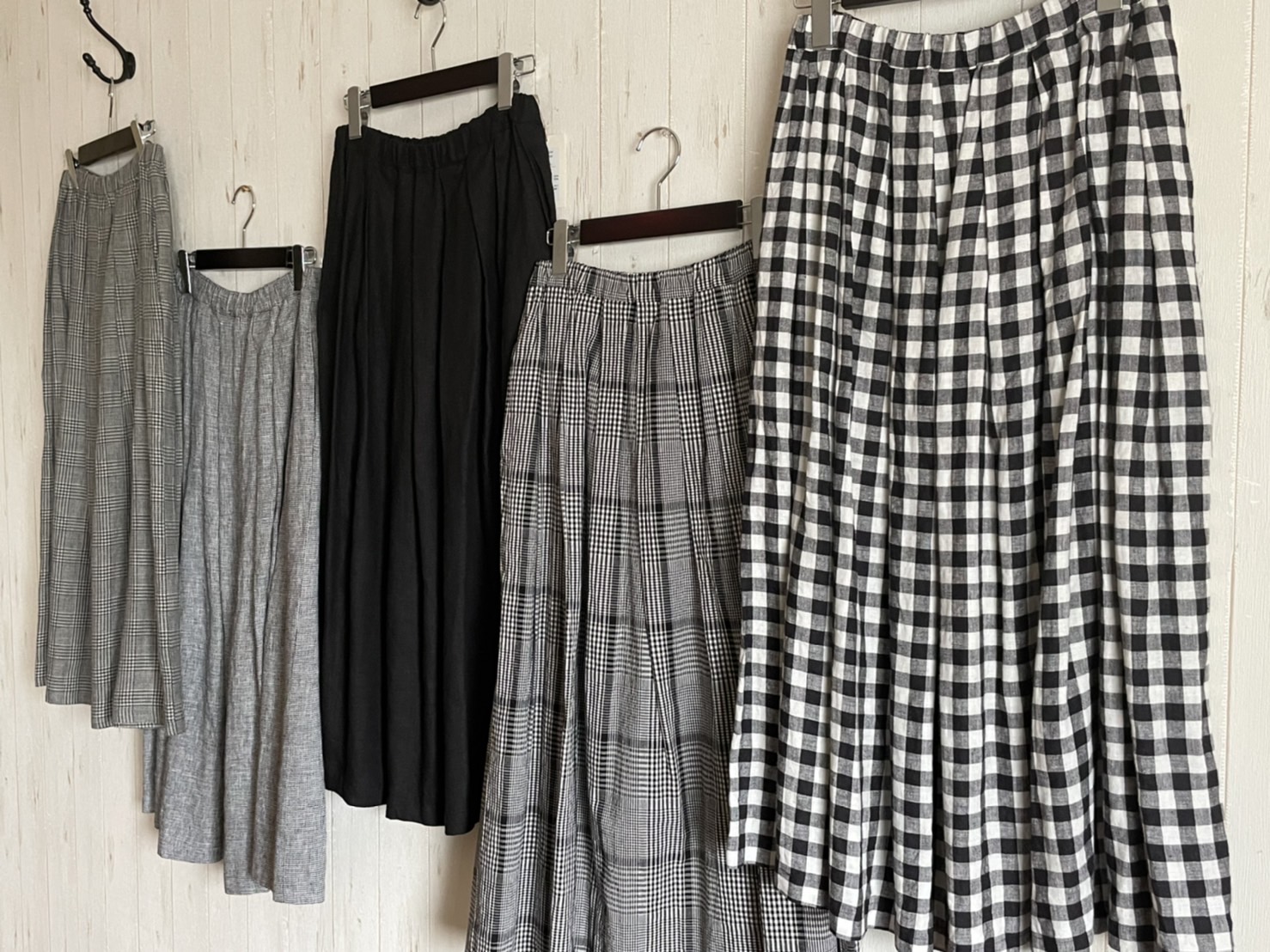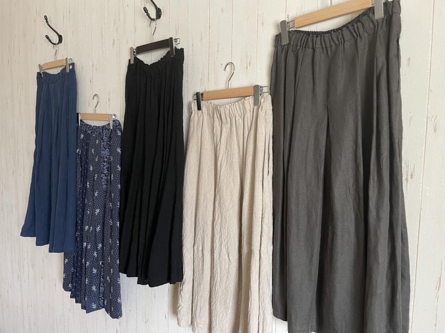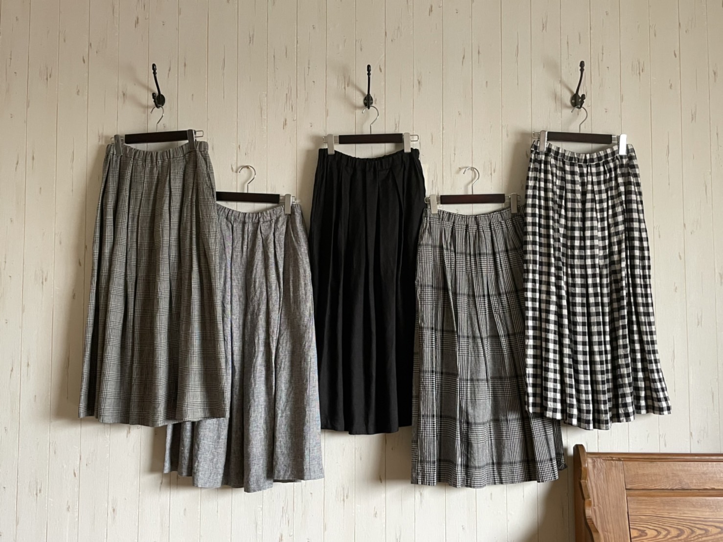 薄手のコットンやリネン、これからの季節、便利に着回しのできるスカートばかり。