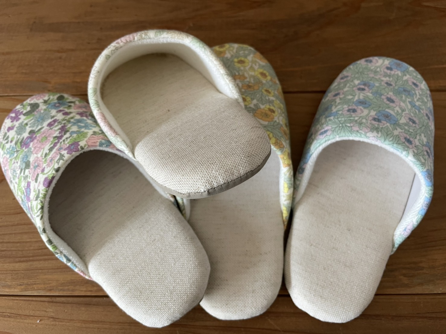 今季は、フランダースリネンにリバティ柄がプリントされた涼し気なスリッパで登場です。