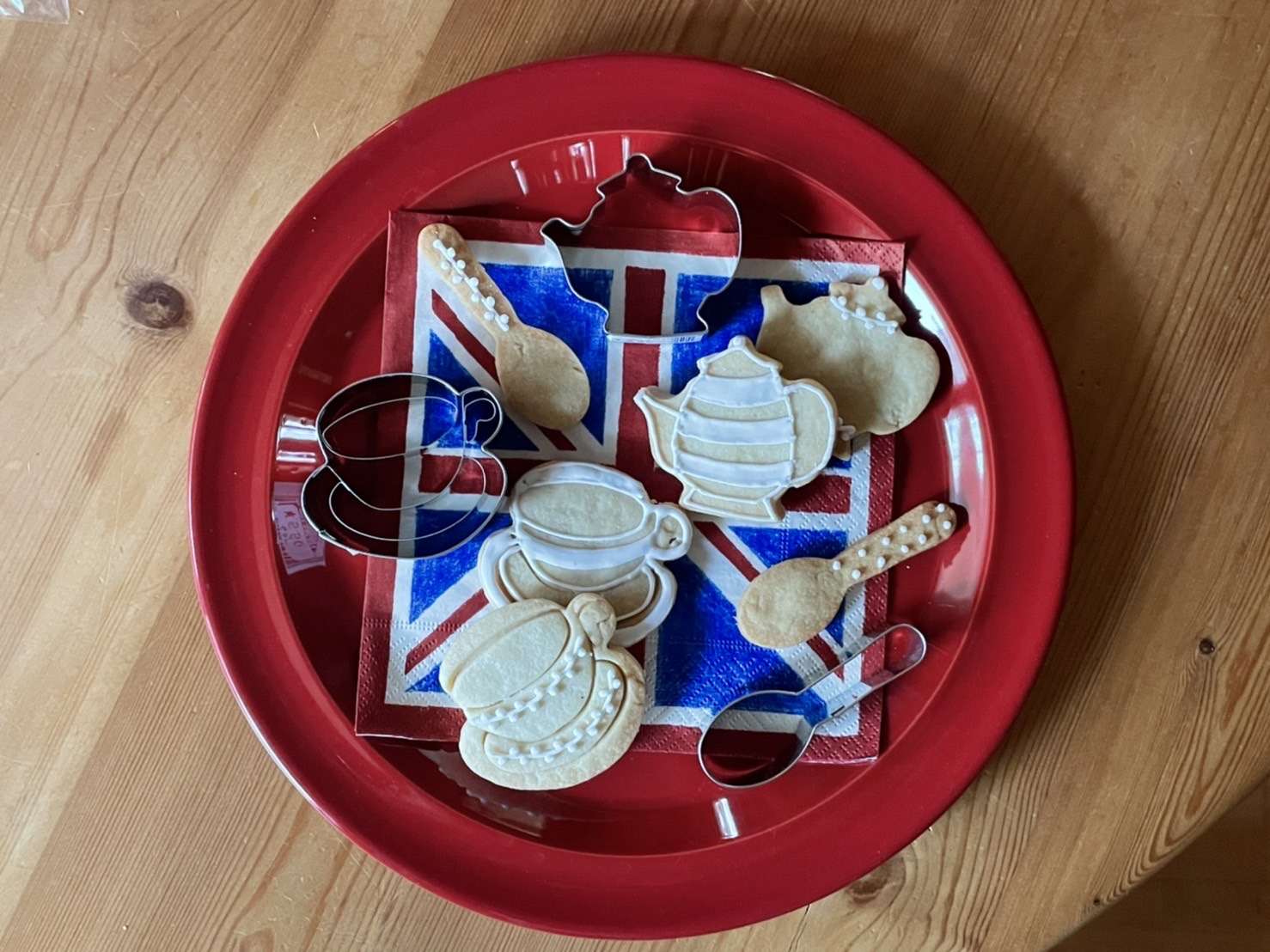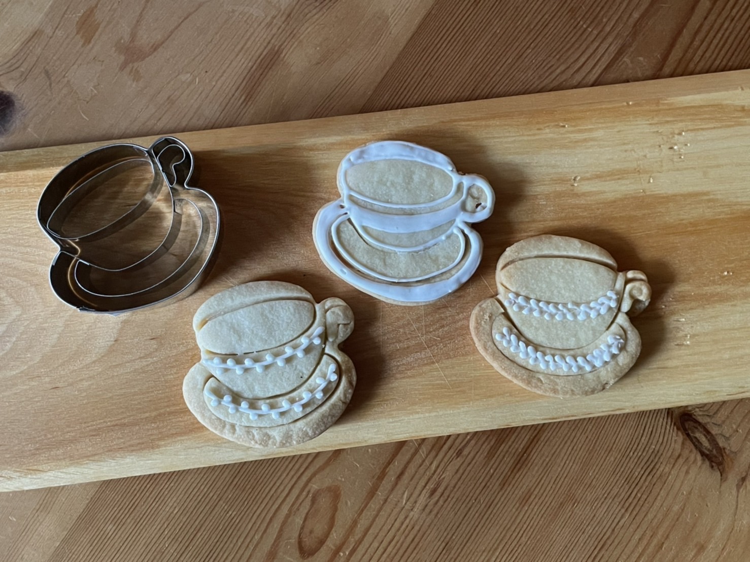 カップ&ソーサー、ティーポット、スプーン、3種類の型抜きクッキーは、プレーンや紅茶のクッキーにぴったり。