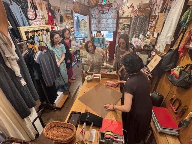 最後は、お店のディスプレイをご覧いただき、どんな資材を使っているか、またパディーズのラッピング方法なども実演。