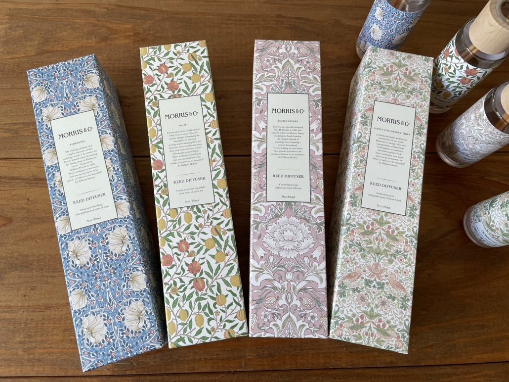 好評いただいております、MORRIS&Co. ウィリアムモリスデザインのリードデュフューザーが全種類再入荷いたしました。