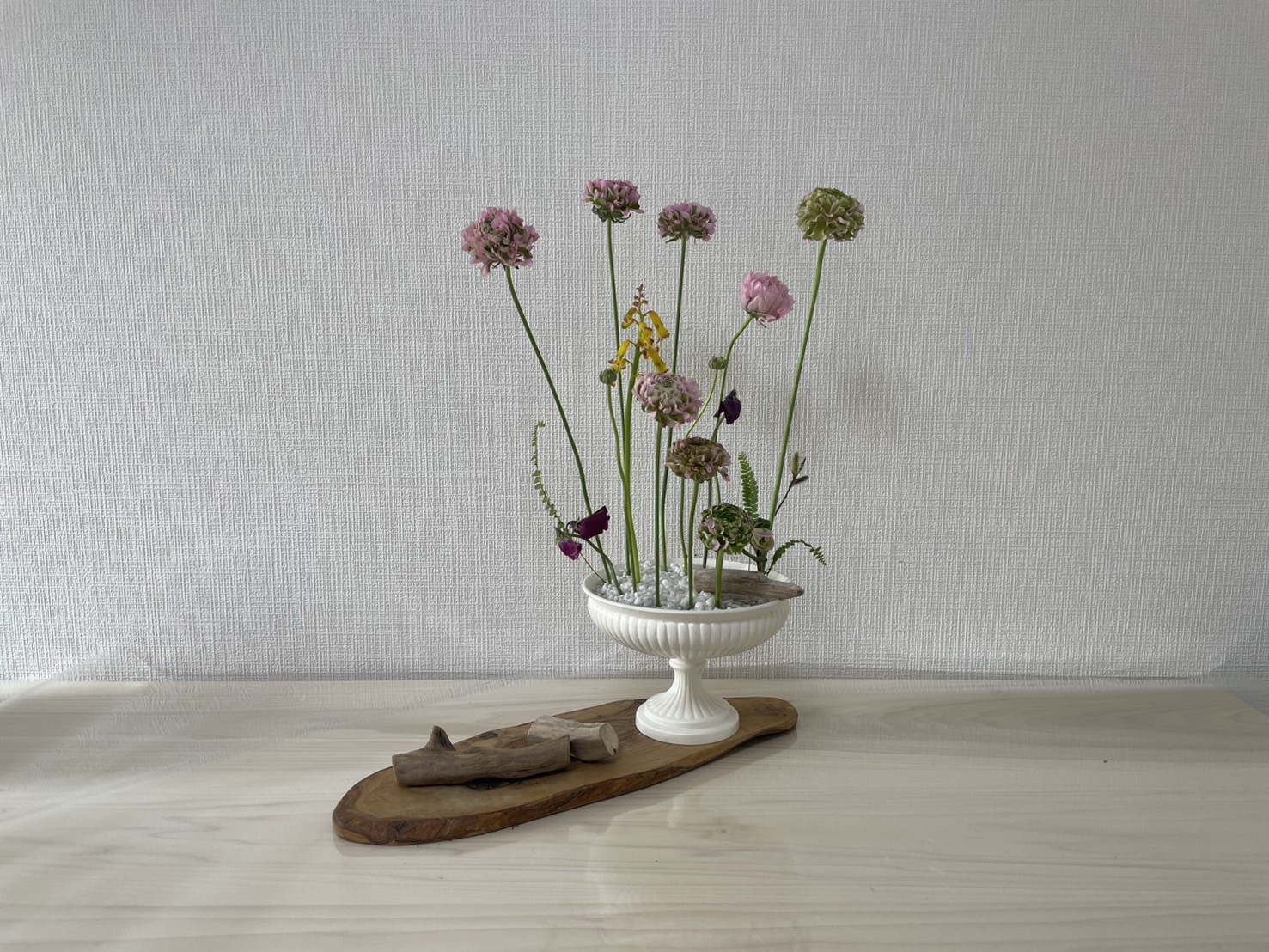 ヴィンテージのウエッジウッドコンポートを見つけたときにいつかこの器で花展に出瓶したいと考えていました。