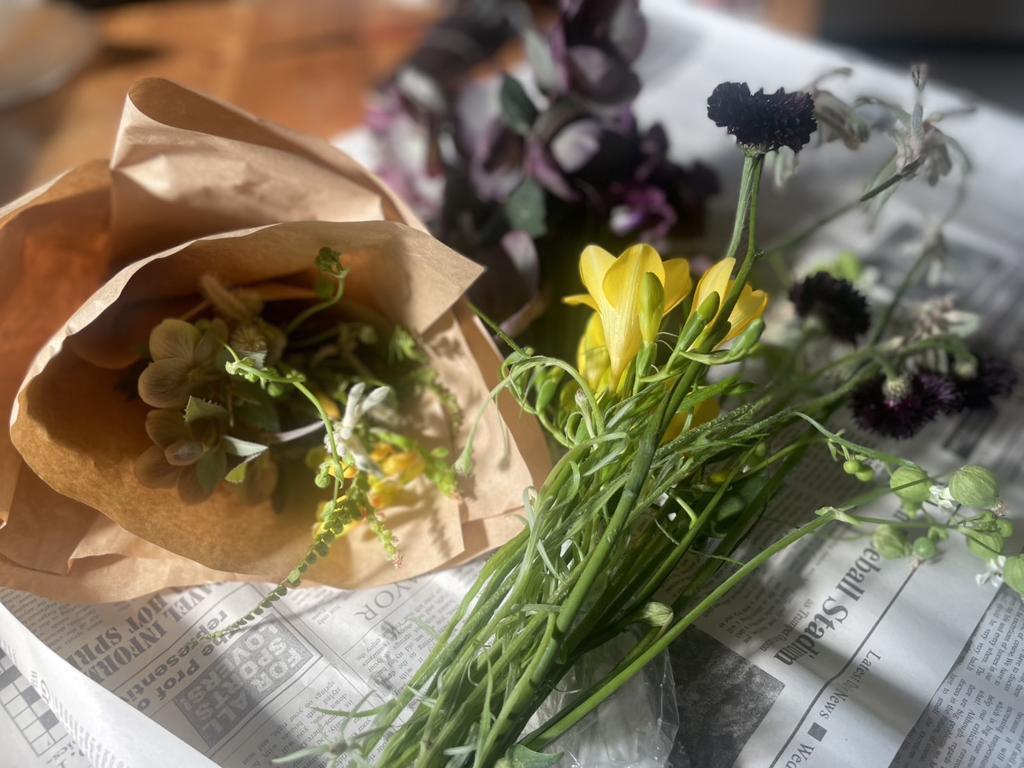 ラスト2本しかなかったので、もしもの時に備えて黄色のフリージアも別のお花屋さんで買い求めました。