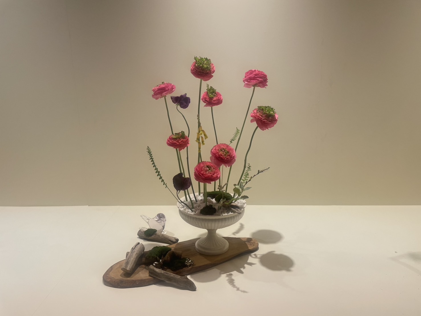 今回は珍しいラナンキュラスなどと花材の組み合わせにこだわりました。