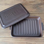 グリラーは、遠赤外線効果で食材のうまみを引き出し直火・オーブン・電子レンジで使える耐熱陶器です。