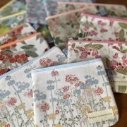 イギリスのテキスタイルデザイナー、エミリーバーニンガムのてぬぐいで作られているポーチが再入荷しました。