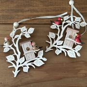 木の枝と巣箱にとまった小さなことりがなんともかわいらしいオーナメント。