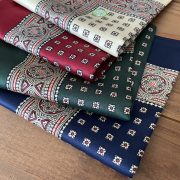 伝統的なパターンであるペイズリーを中心に、ドットや、カウベルなどブランドのオリジナルデザインのプリント柄などパターンが豊富にあります。
