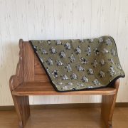 カーキベースに小さな羊柄が編みこまれたデザインのブランケットです。