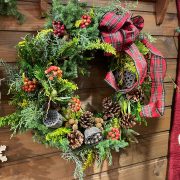 また、モミの枝やサンキライ、ウィンターベリー、ブルーアイズなどを簡単に束ねたものなどもご用意する予定です。