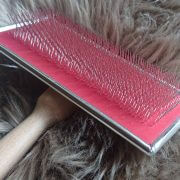 シープスキンのお手入れは、このブラシをかけて毛並みを整えてください。