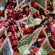 リバティの花柄を組み合わせてユニオンジャック柄を表現しています。