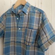 スティアンコルボタンダウンリネンシャツブルーマドラス ¥18800+税