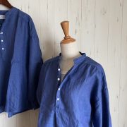 ゆったりしたシルエットのバンドカラーシャツSWEDISHの新色、インクブルーが入荷いたしました。