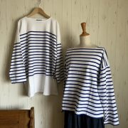 左:ボーダープルオーバー 身幅118cm 着丈64cm ¥12000+税
