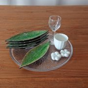 本物のような葉脈やみずみずしいグリーンカラーをガラス質の釉薬で表現しています。
