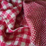 赤いギンガムチェックのプリントがかわいいパイル地のふきんが入荷しています。