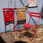 ビストロチェアは、限られたスペースに最大限の席数を確保したいカフェオーナーの要望に応えて1989年に開発し、特許を取った軽量でコンパクト、実用的な折りたたみチェアです。