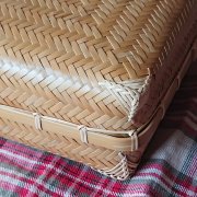 細いひごで丁寧に編まれた網代編みの蓋つきかごのご紹介です。