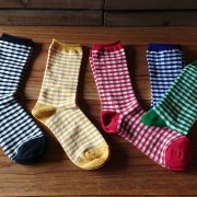 ギンガムチェックのソックス レッド/グリーン/ブルー/ブラック/マスタード 各¥700+税