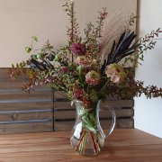 ルミナルクピシェピッチャーにも秋の花をアレンジ。