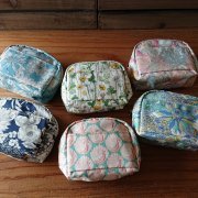 リバティプリント生地で作られているコンパクトサイズのミニポーチが再入荷しています。