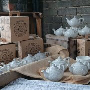 バーレイ社の陶器は、豊かな土と陶器に適した気候のストーク オン トレントで昔ながらの銅板転写方法による職人たちの手作業で作られています。