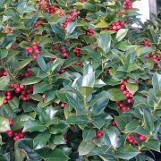 短めにカットしたもみの木や姫りんご、くるみなどを盛り付けて