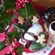 クラシカルマットゴールドのカトラリーを添えてクリスマスのティータイムです。