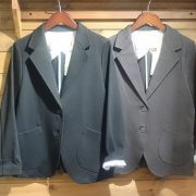 しっかりと目の詰まった編地は、型崩れしにくく適度な伸縮性がありジャケットなのに動きやすい