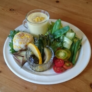 高原野菜をたくさん購入できたのでワンプレートの朝食に。